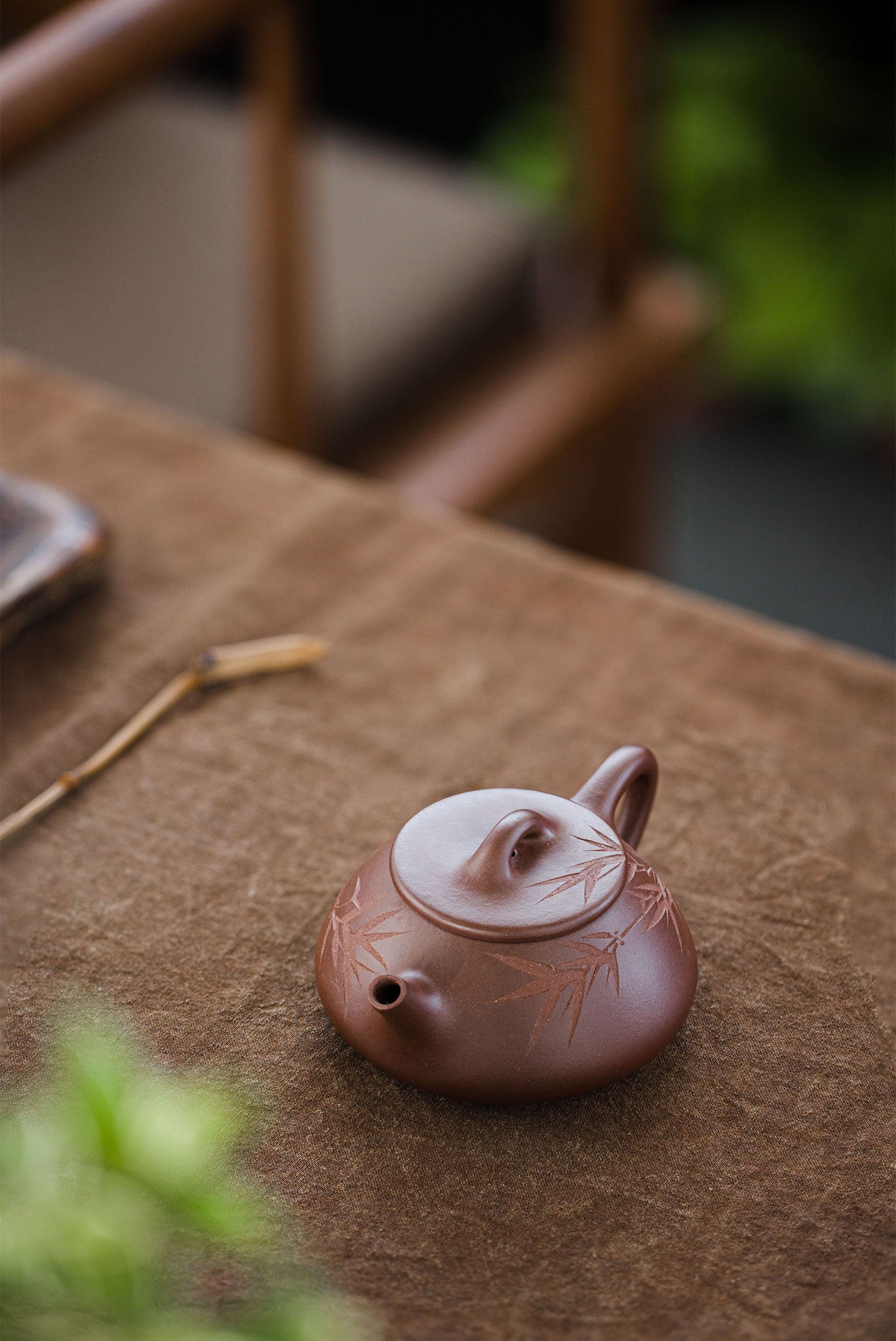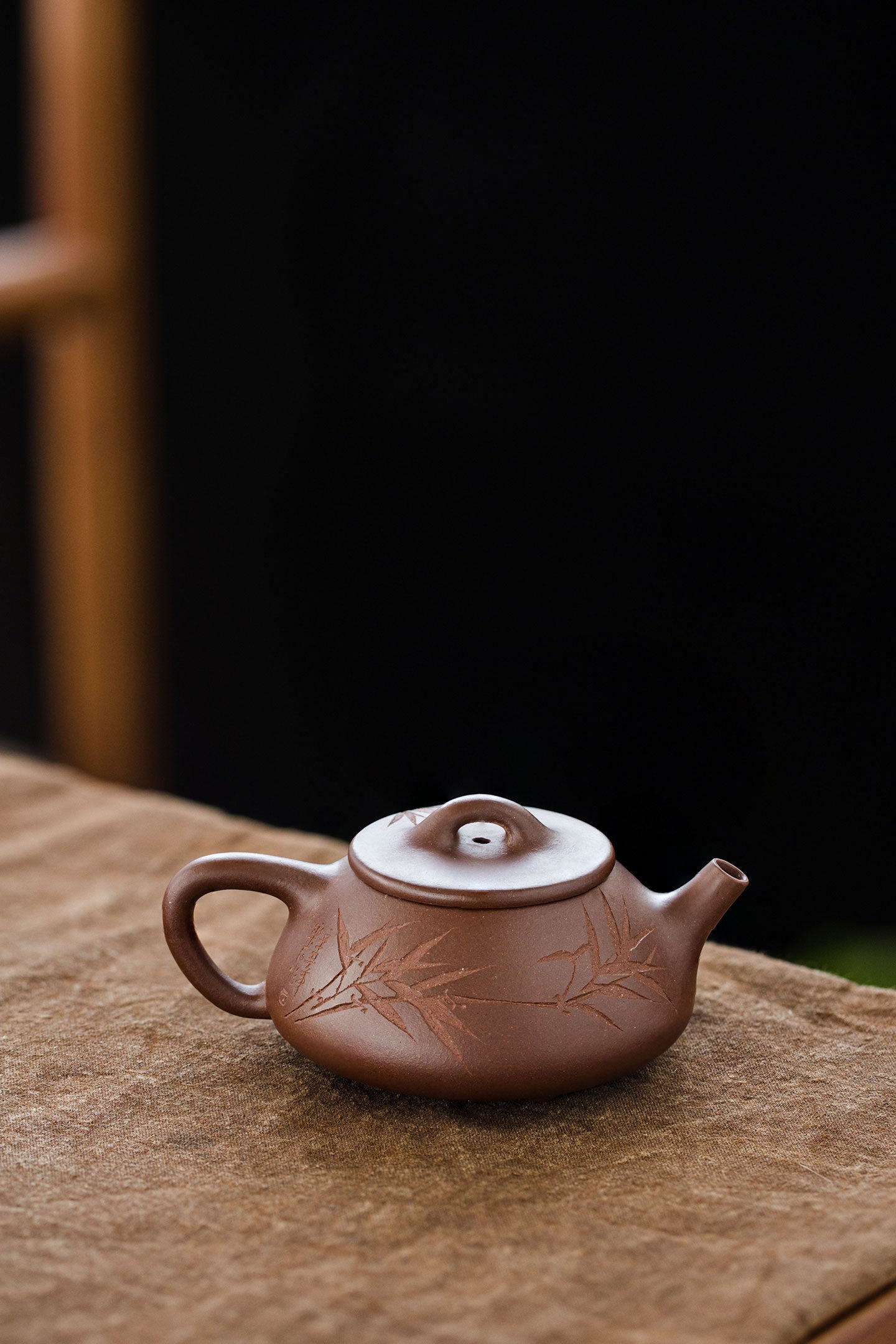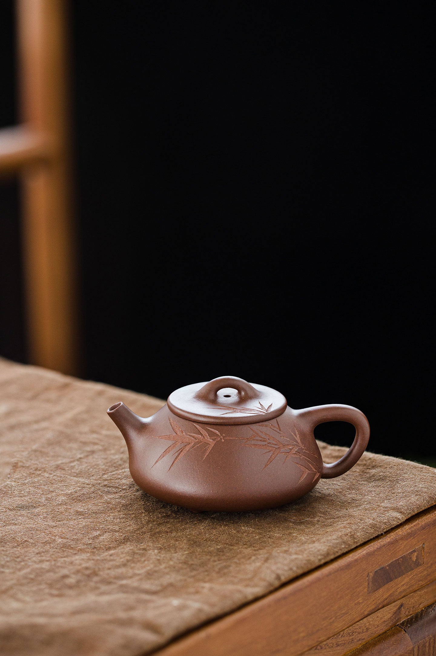 Shi Piao is a classic Yixing teapot, conical body, bridge button, three circles of foot are the three elements of Shi Piao. The line of the pot seems simple, but it is the beauty that the craftsmen can show after thousands of adjustments. A good pot that combines beauty and utility.