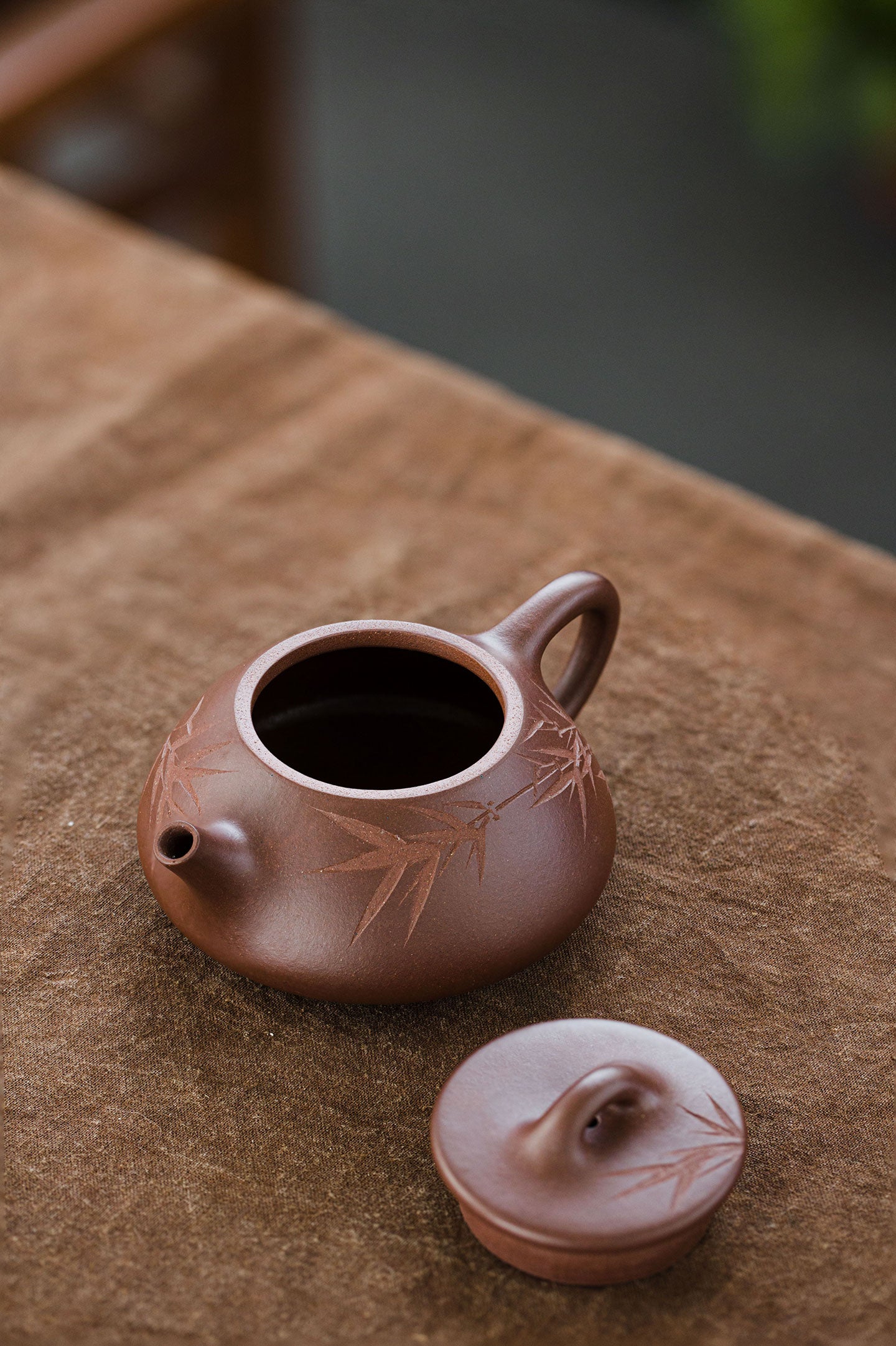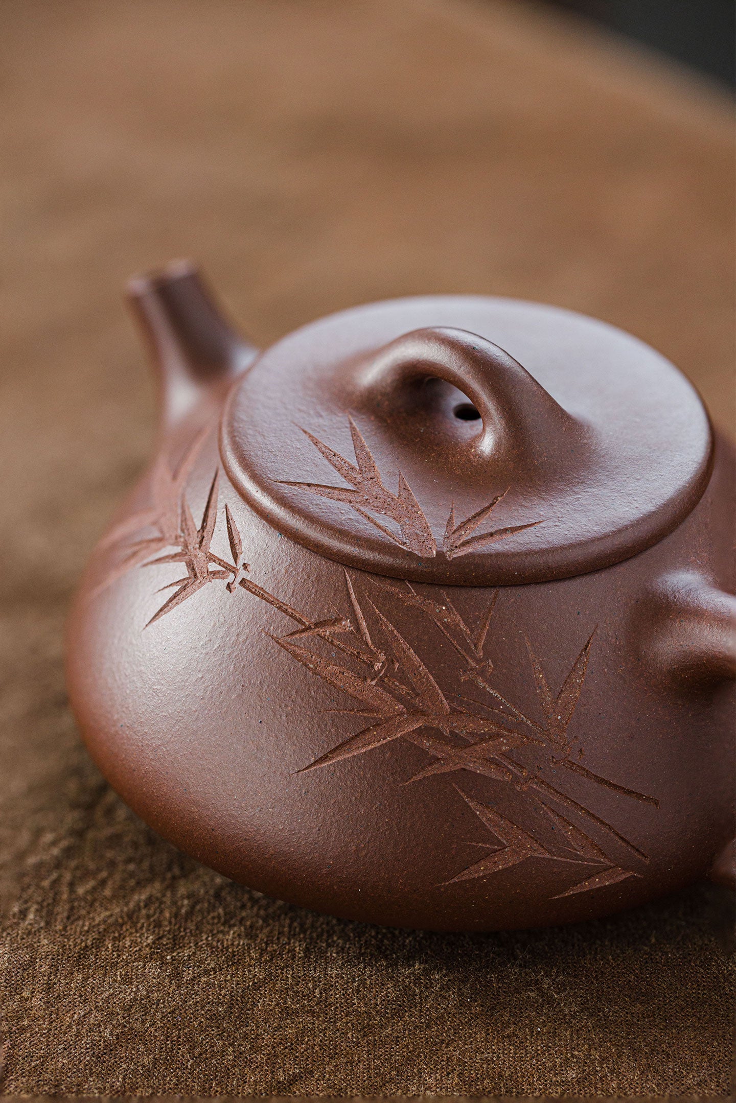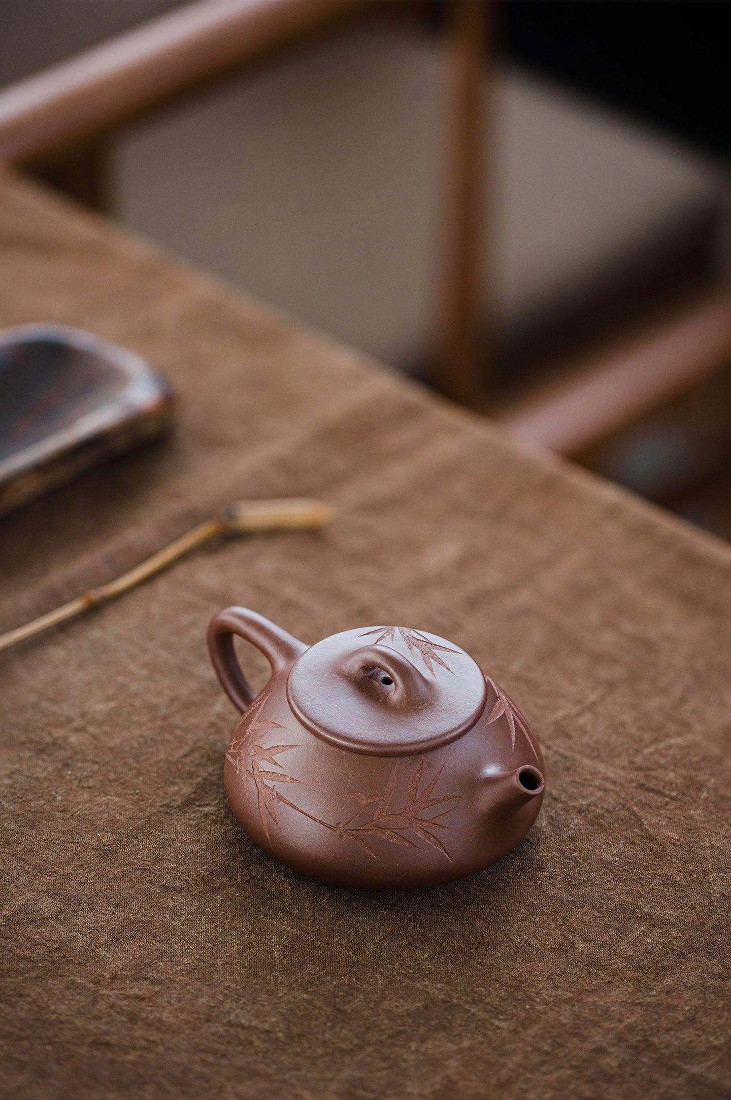 Shi Piao is a classic Yixing teapot, conical body, bridge button, three circles of foot are the three elements of Shi Piao. The line of the pot seems simple, but it is the beauty that the craftsmen can show after thousands of adjustments. A good pot that combines beauty and utility.