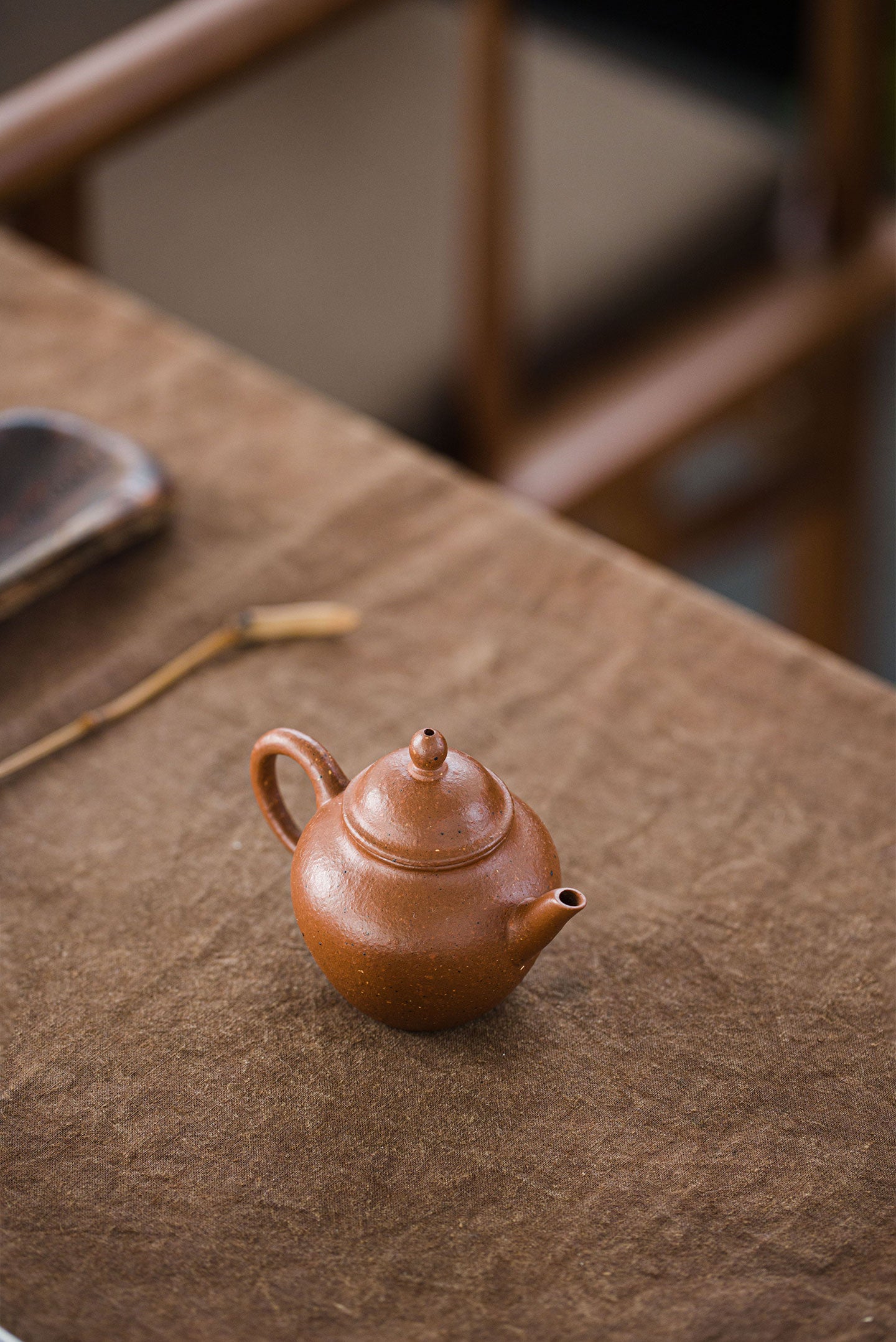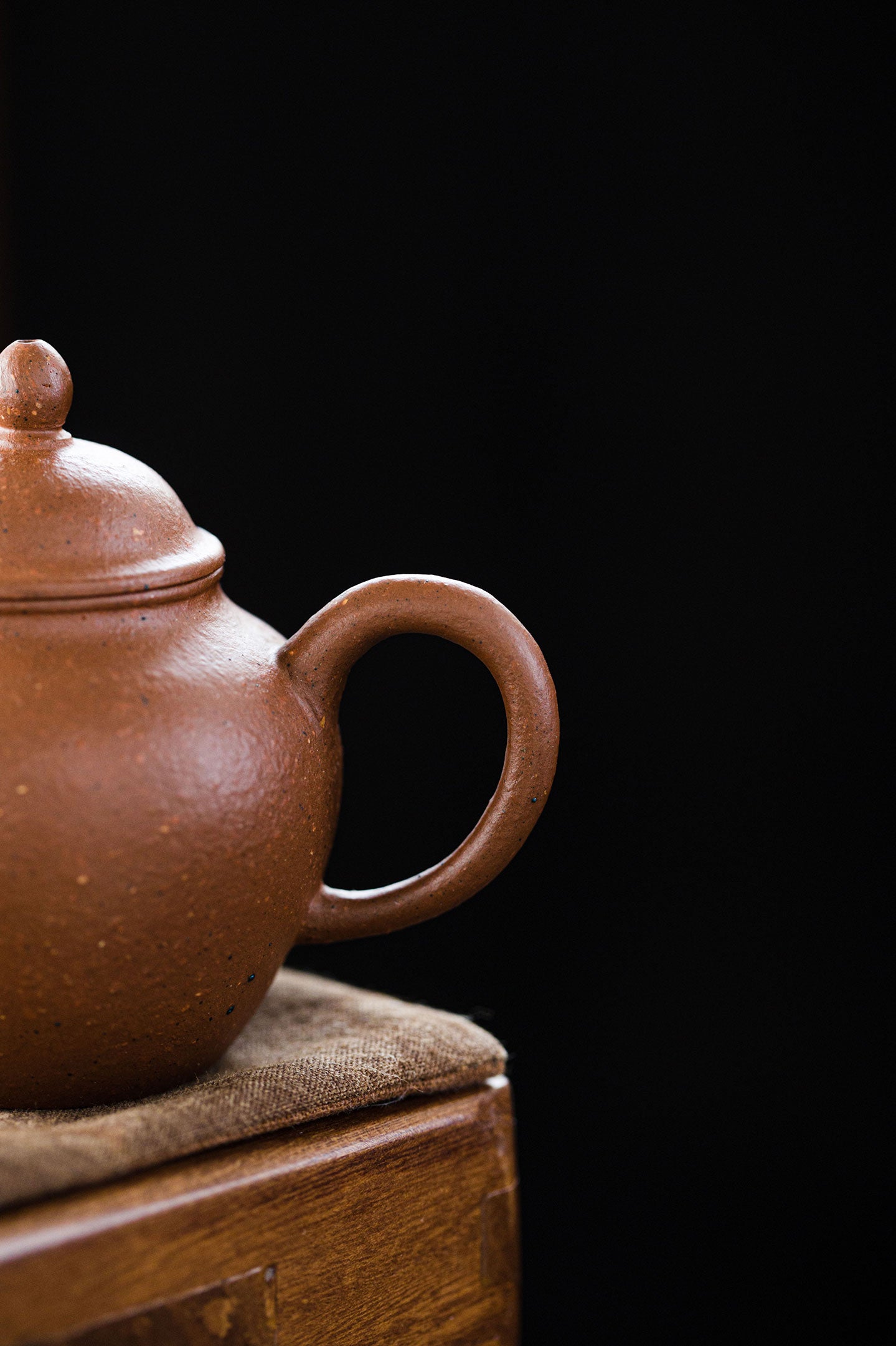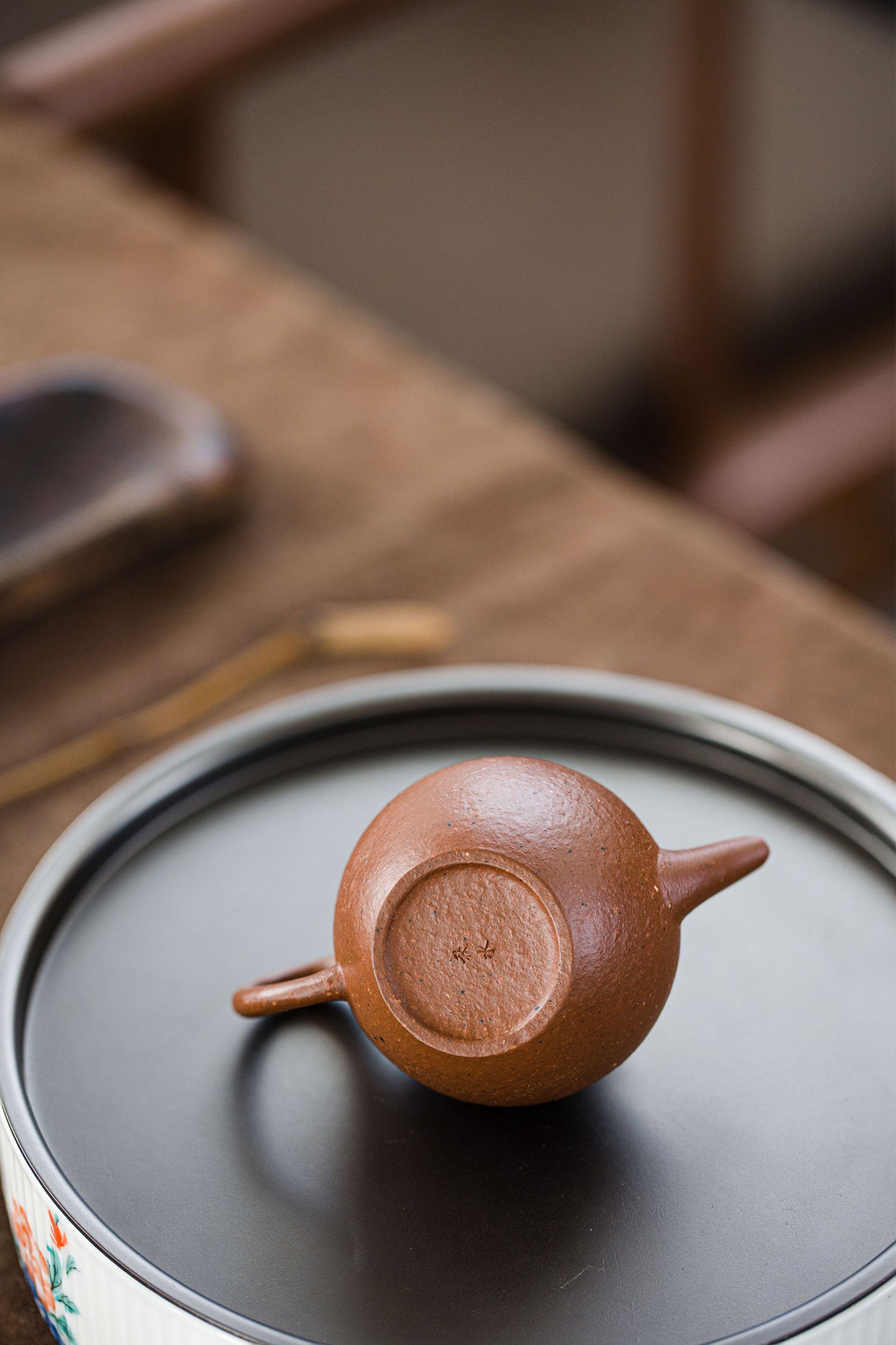 This teapot uses 40 years old huang long mountain zhuni with simple ways to refine to keep the original nature. It’s half-handmade.