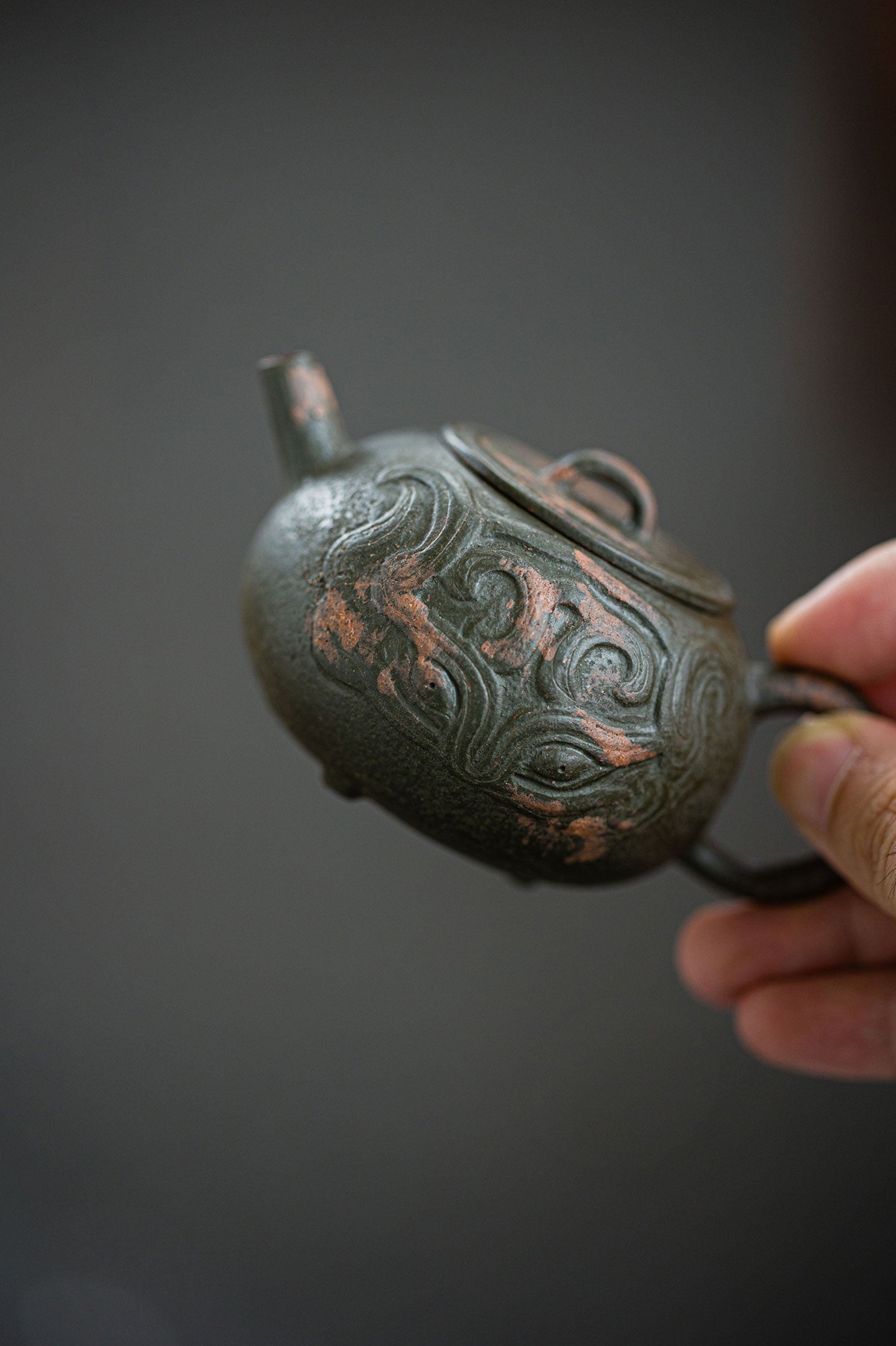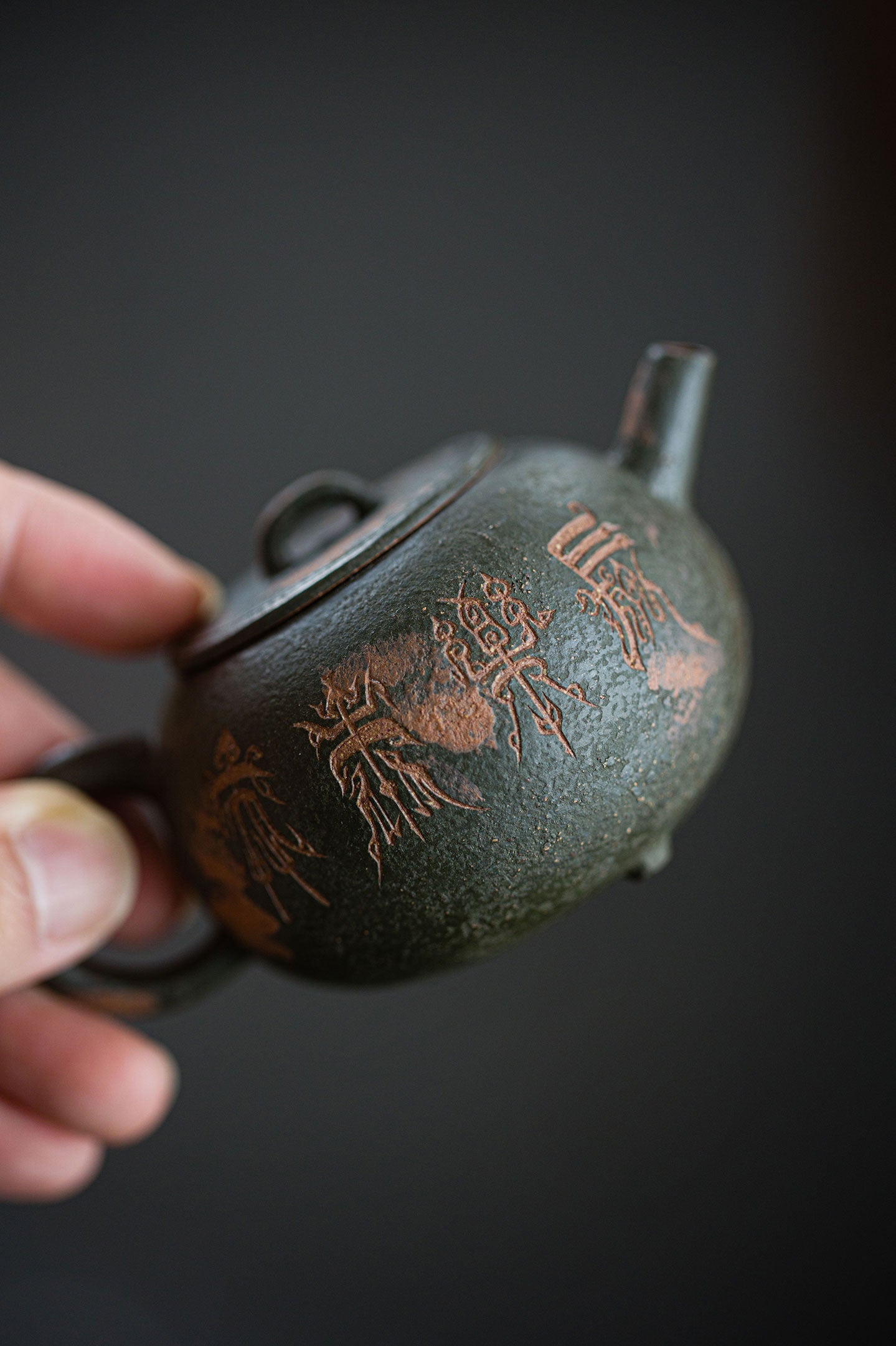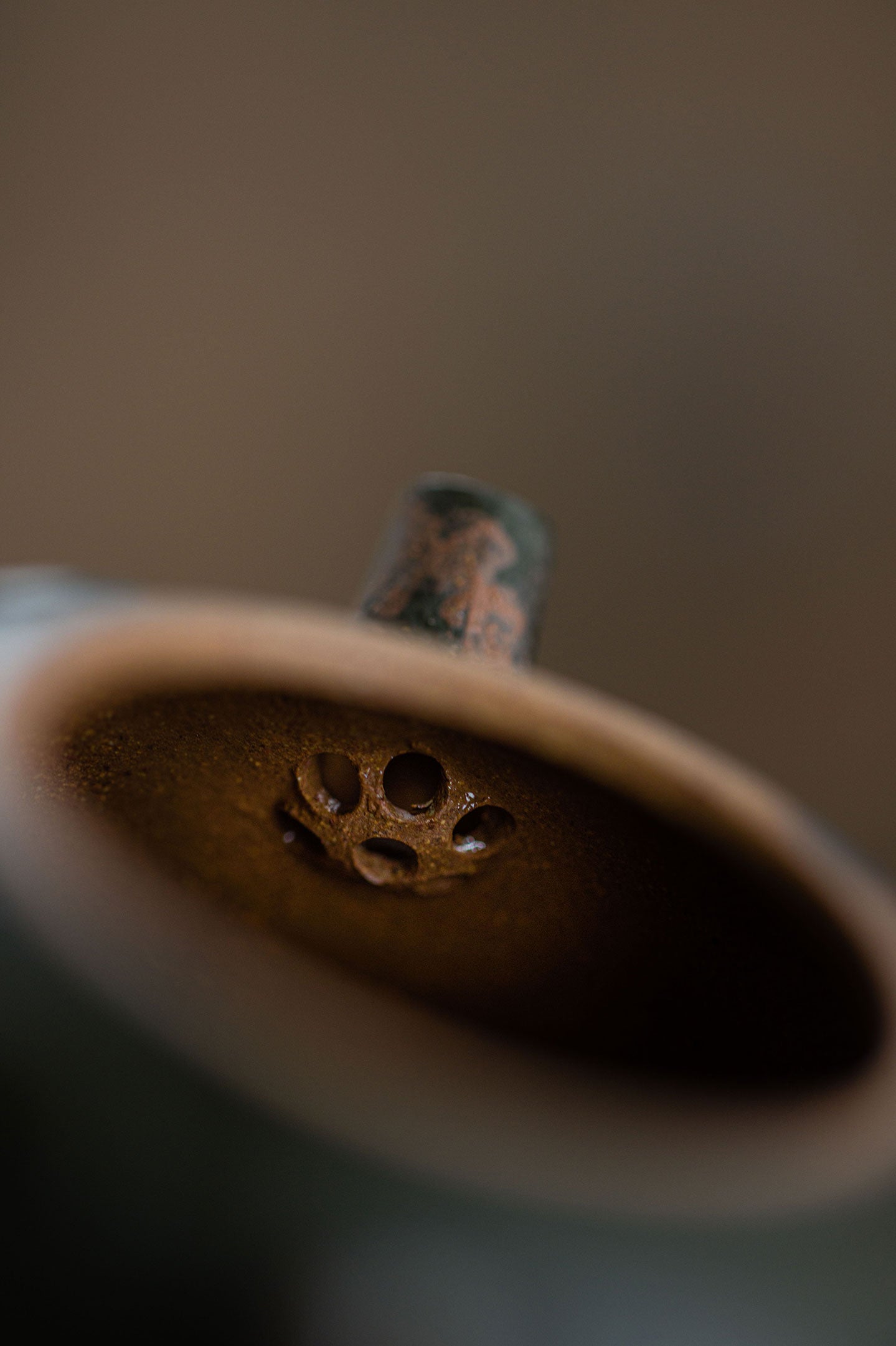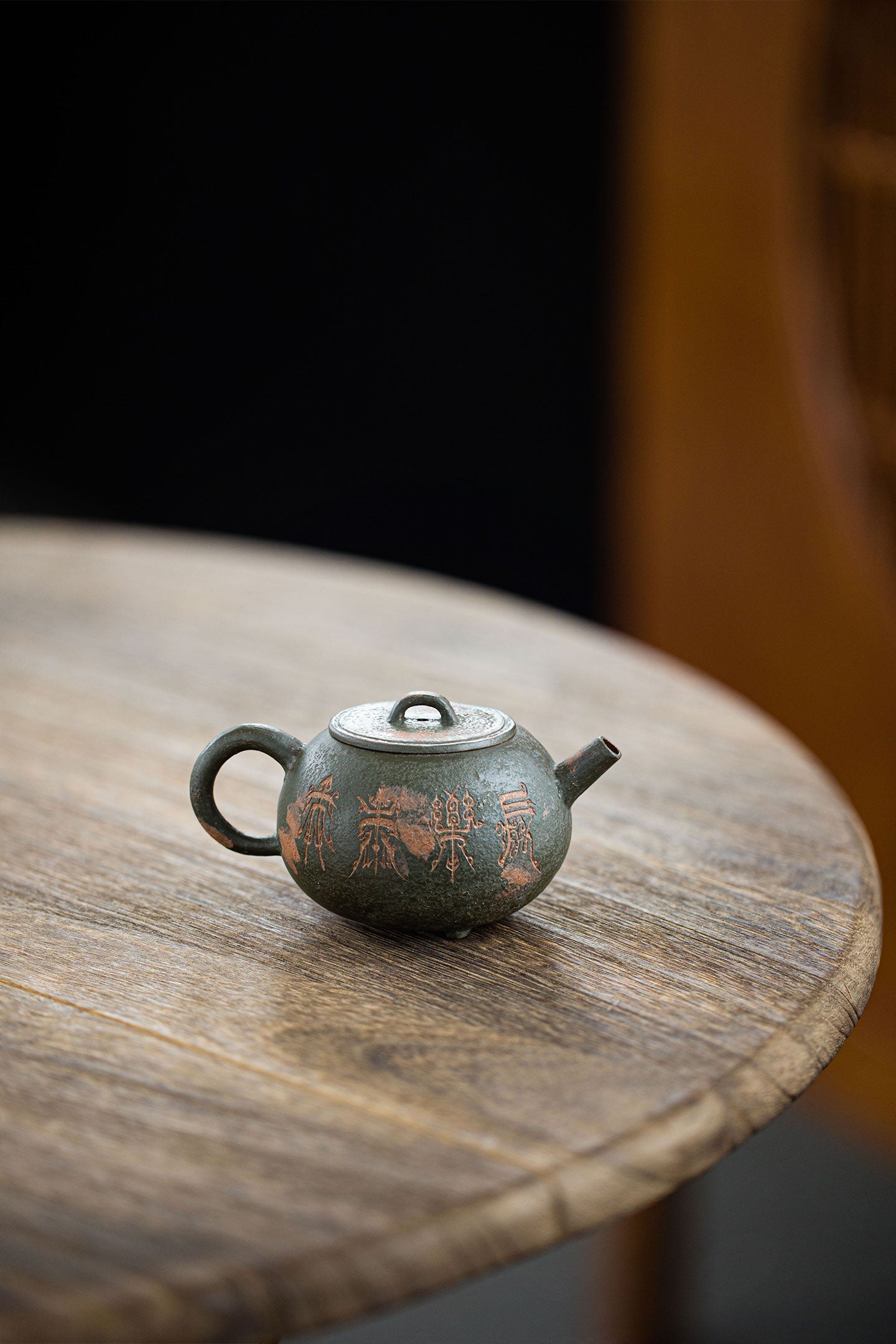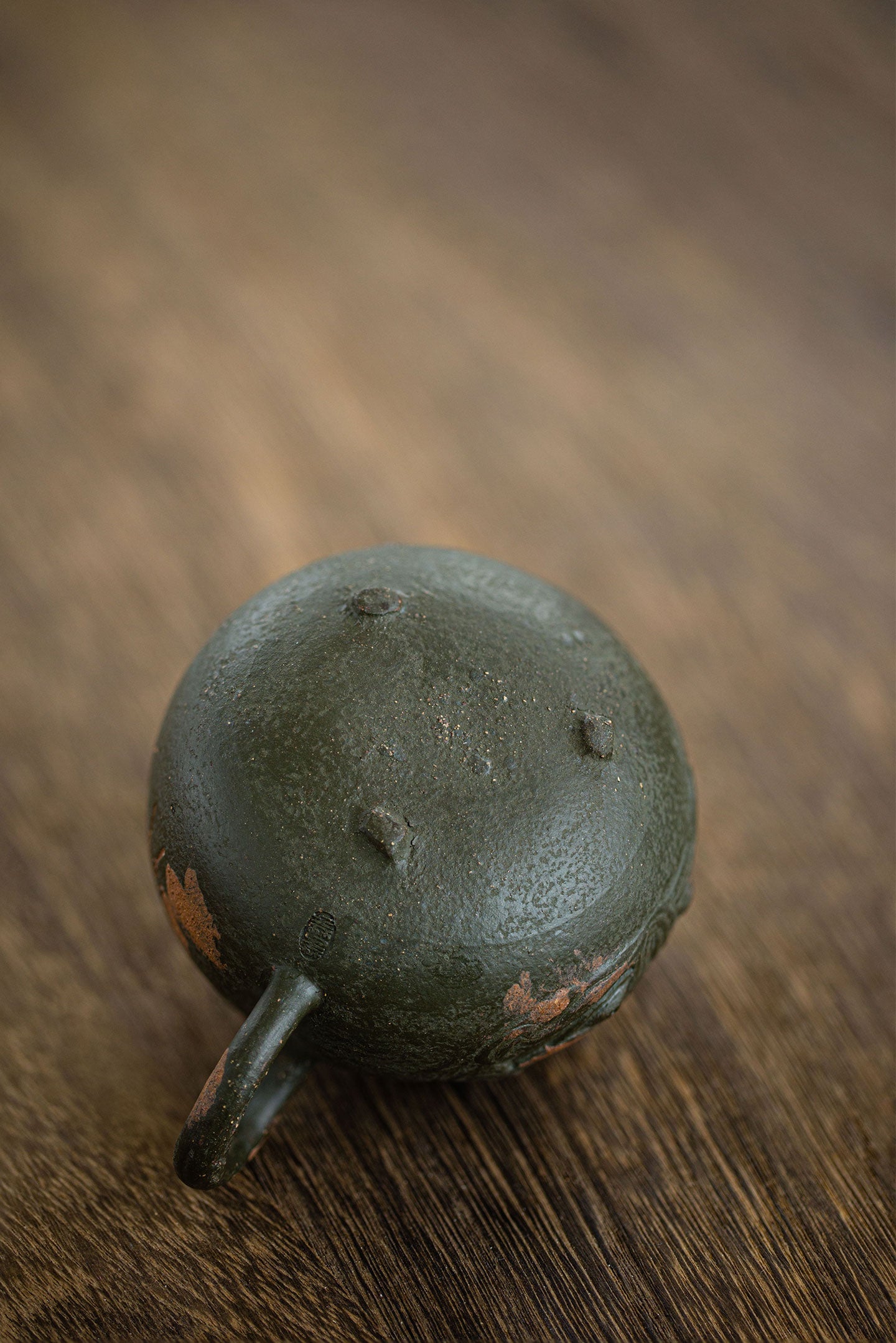 Lvni is very pure and hard to fire, so it usually becomes decorative clay to paint outside the teapots. Usually, it is used as a mixture of zini, hong ni and so on. I wrote this "lvni" is this mixture of clay, and after firing, it's green.