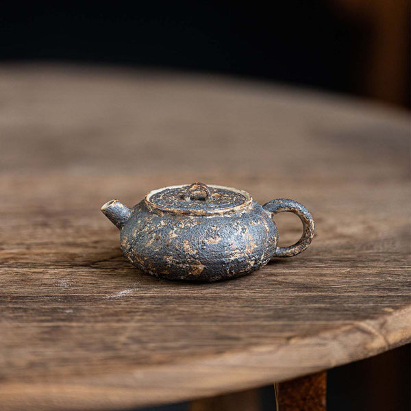 The flat Ju lun teapot is used Ju Ding craft. It is regarded as a distinctive decoration method of zisha teapot . It makes the teapot look old and delicate.