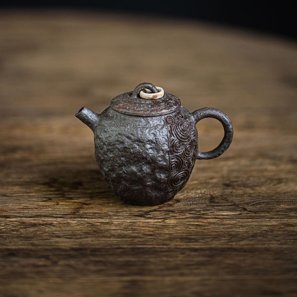 The surface of the teapot has a unique texture, shows a rustic and natural charm.