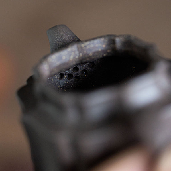 The teapot body is shaped like a ling flower. Its edges are distinct but not sharp.The hollow design of the lid is ingenious, adding a sense of agility and interest.